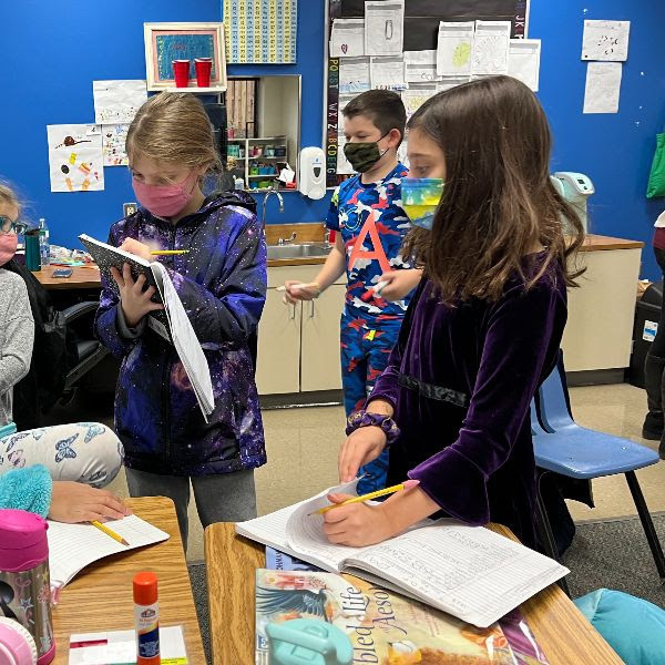 Inquirers in Mrs. Lauren Lauer's third-grade class gather data about their classmates. In the PYP Unity of Inquiry: How We Organize Ourselves, the central idea is "Structure is Essential to Order."
